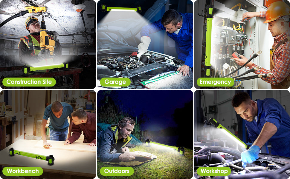 This work light features an impressive 3000 lumens brightness, offering unmatched illumination. It includes versatile attachment options with strong magnets and hooks, ensuring hands-free use in various situations, whether you're repairing a car or camping outdoors.